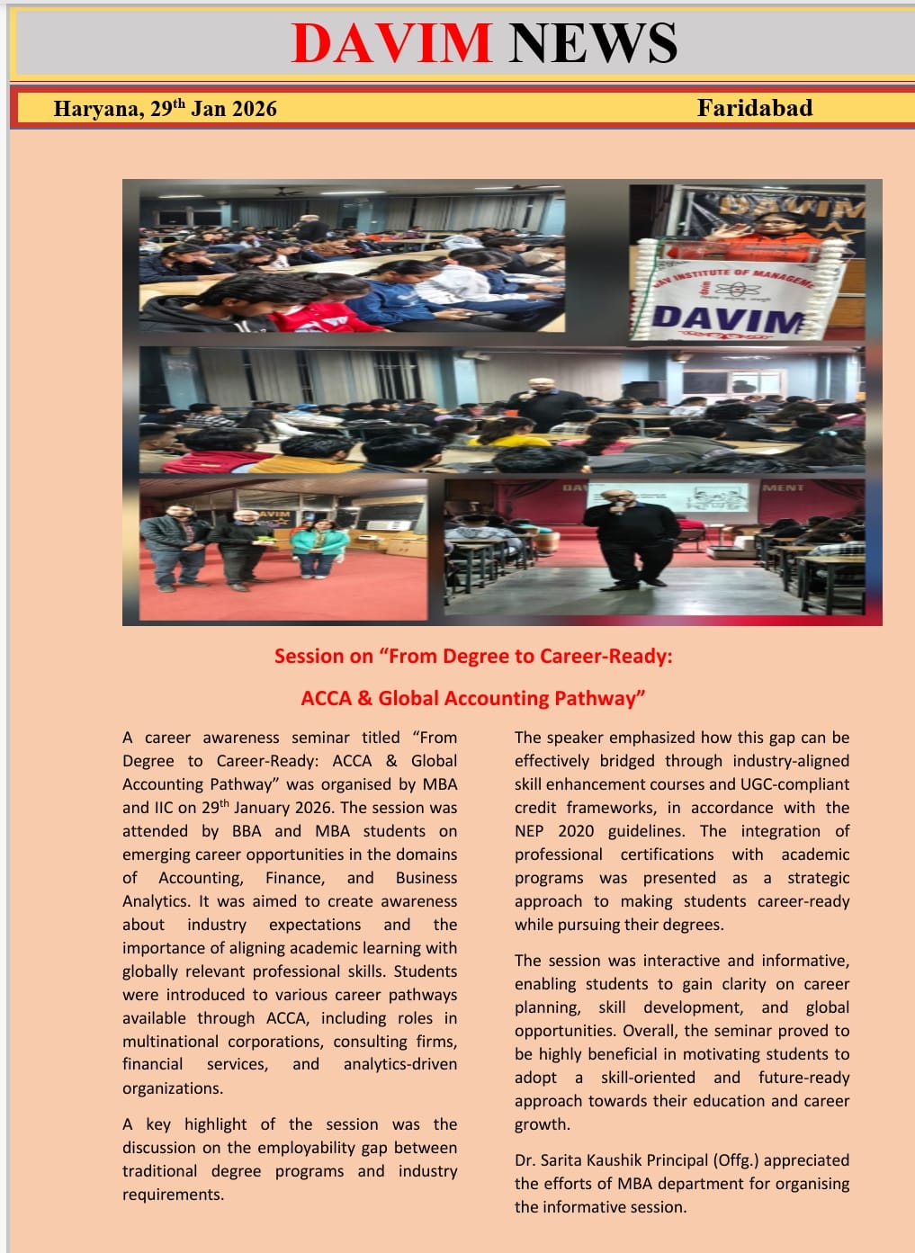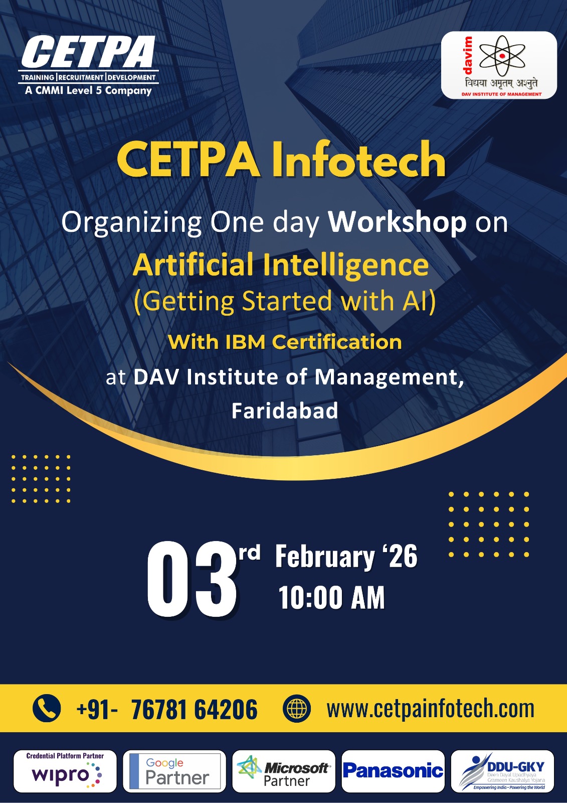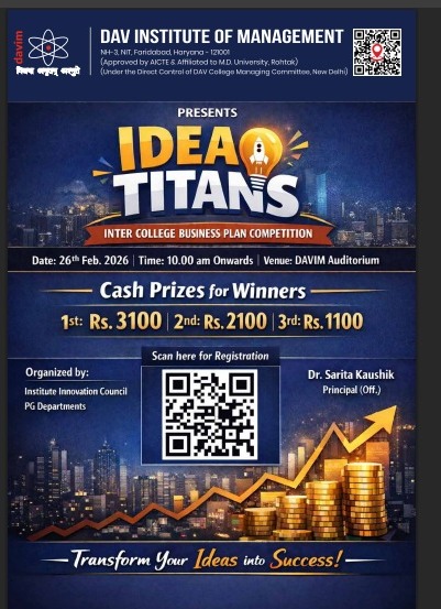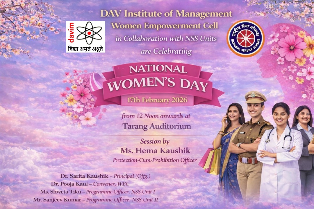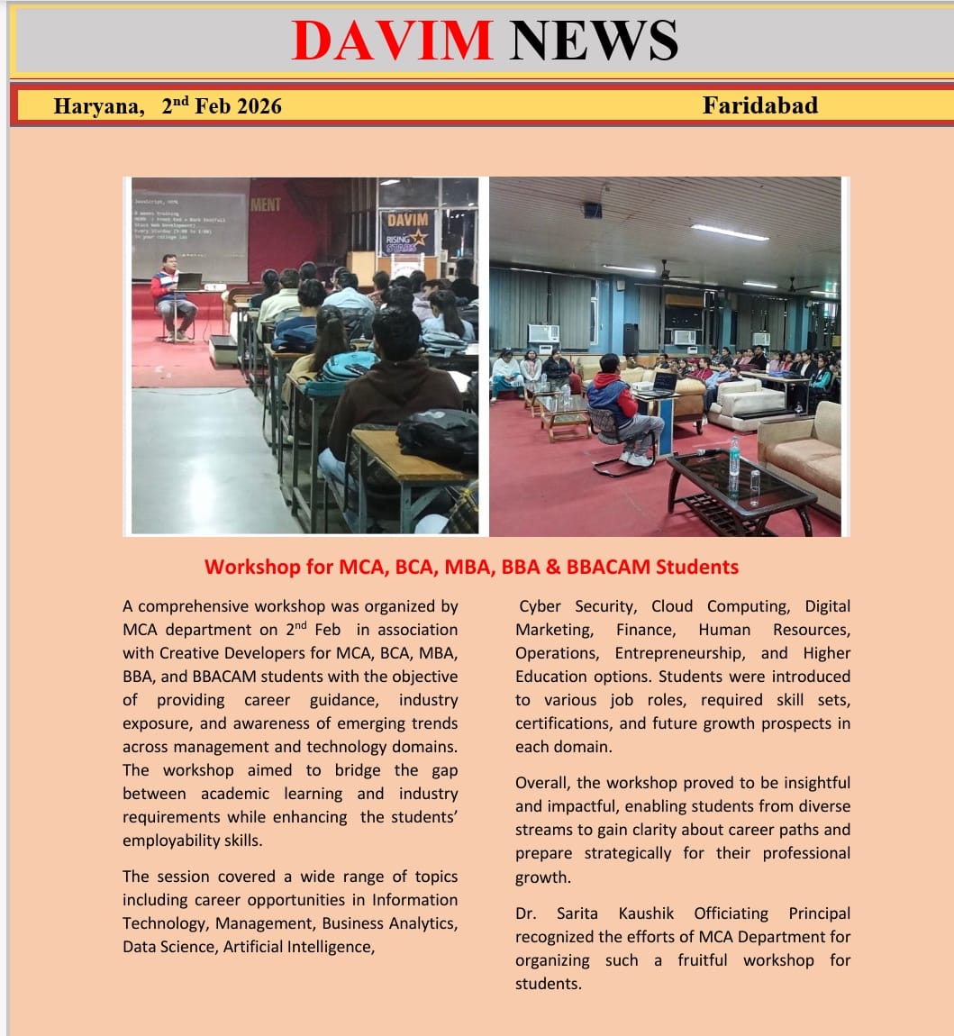DAV INSTITUTE OF MANAGEMENT , CNCR (Faridabad) was established on 12th October 1997 by DAV College Managing Committee, New Delhi, with Vedic values embedded in the educational vision.