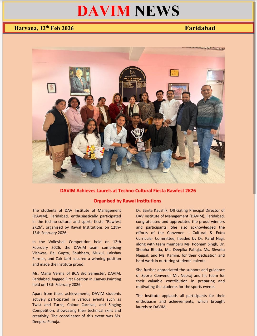 The DAVIM has toiled incessantly and takes pride in the fact that the number of students has increased from 30 to more than 2000. The faculty strength has grown from 5 to 100 plus.